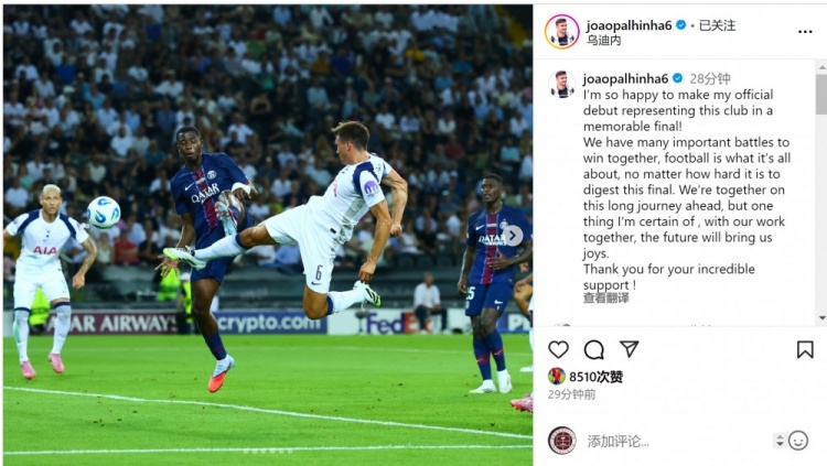 帕利尼亚:很高兴上演热刺正式比赛首秀,齐心协力未来必有斩获